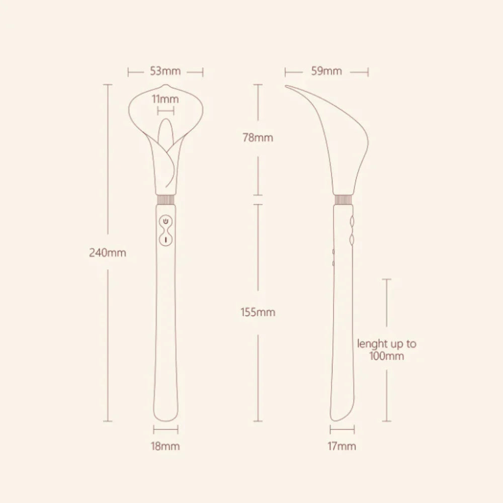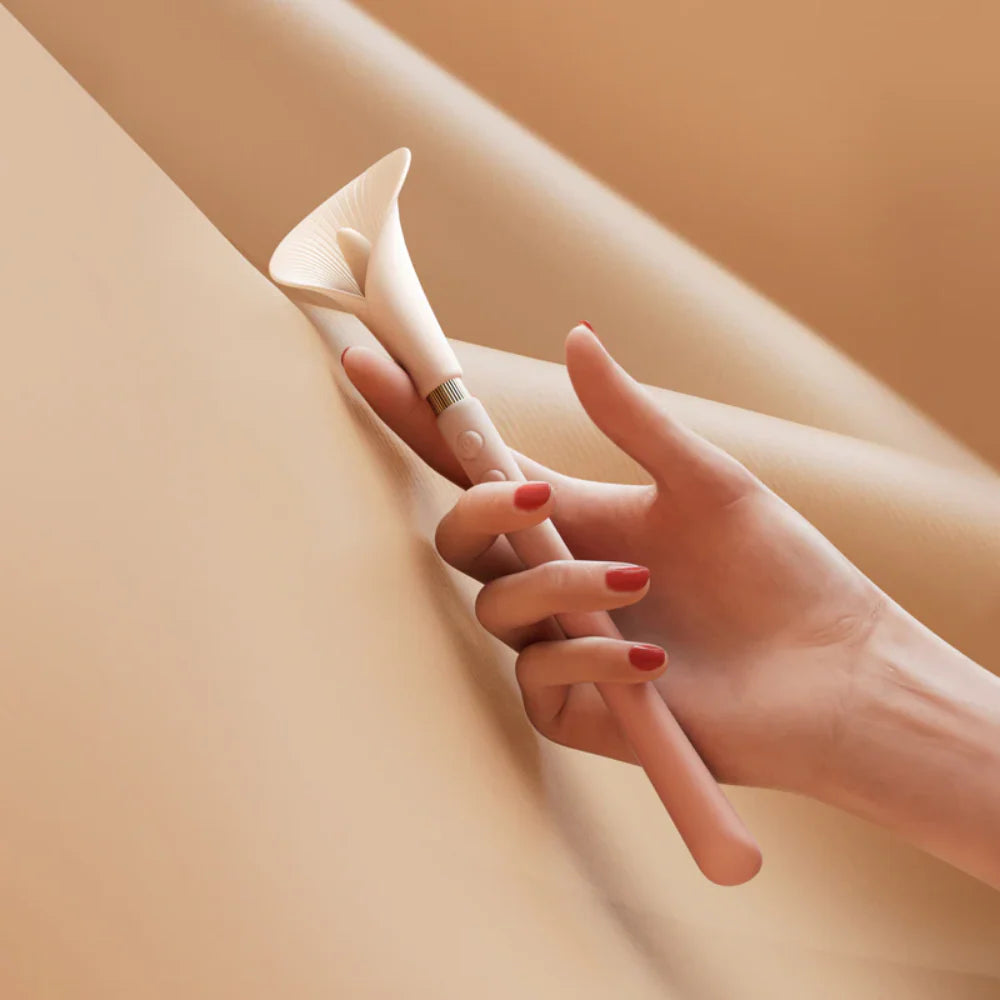 Inspired by the graceful Calla Lily, this beautifully designed personal massager quietly blends into your life. Crafted for women who value privacy, it offers discretion without compromising on function. Inside its smooth silicone exterior are two powerful motors. The petal-like tip delivers external vibrations to tease and tantalize, while the rooted base provides internal stimulation for an unparalleled experience.